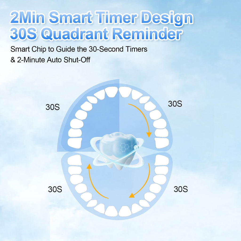 Smart Timing: A built-in 2-minute timer with 30-second interval reminders to ensure a complete clean.